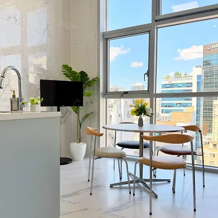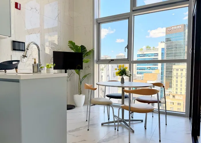 寝室1室のThe Comfort ソウル特別市アパートはソウル特別市から0.9km離れた所で、会賢地下鉄駅から徒歩で5分の場所にあります。 ビジネスでもレジャーでもWi-Fiを利用することができます。